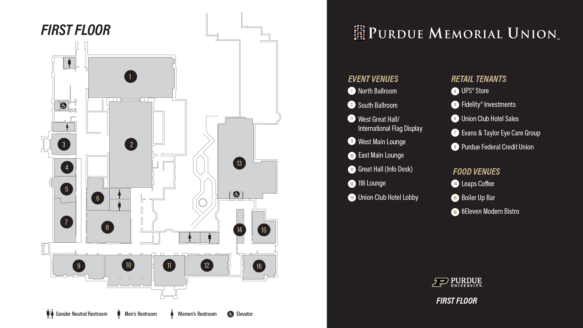 Welcome to the Purdue Memorial Union. Within our bustling building, we have everything right here to meet your needs.